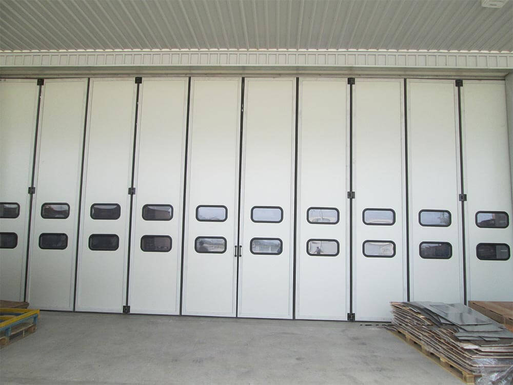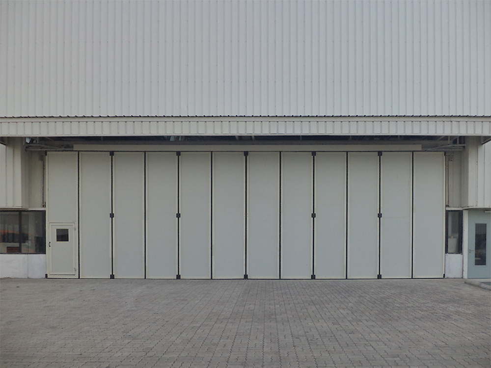 There are situations where a door installation is necessary for large opening dimensions and where additional roof loading is out of question. In such situations Avians provides you the solution that you need with its in house manufactured product – Folding doors.
