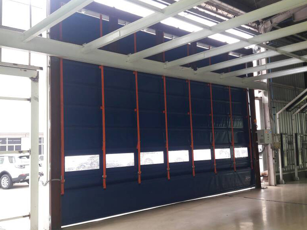 Used for controlling environments conditions inside the factory. High speed PVC doors opening and closing is guaranteed by lifting belts, which are directly connected to the winding tubular shaft and are powered by side mounted motor. The lowered curtain is completely extended down; while at open door the curtain is folded up in sections parallel to each other that safe guard the wear and tear of components.